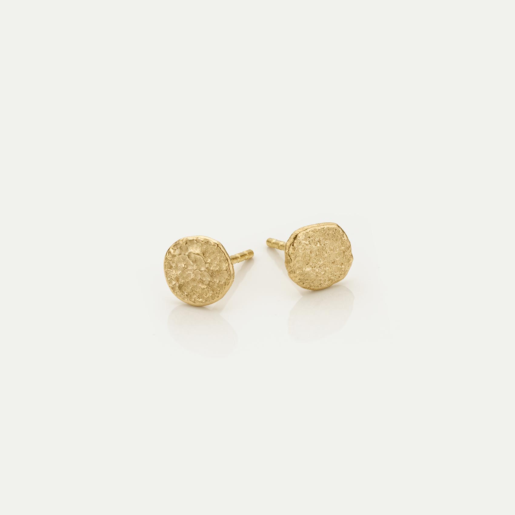 Gouden oorknopjes, gemaakt in geel-, wit- of roodgoud met een uniek organisch oppervlak. Ga stijlvol de dag door. De oorknopjes zijn ongeveer 7 mm doorsnede.